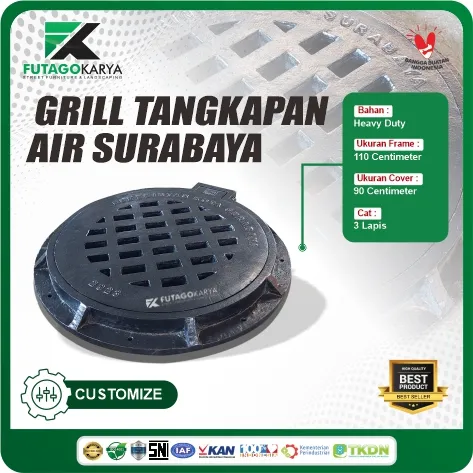 Futago Karya bangga mempersembahkan produk terbaru kami, Grill Penutup Saluran Air Surabaya. Grill ini dirancang khusus untuk memenuhi kebutuhan sistem drainase di kota Surabaya, memastikan saluran air tetap berfungsi dengan baik dan tidak tersumbat. Dengan kualitas dan kekuatan yang kami tawarkan, grill ini adalah solusi ideal untuk menutup saluran air di area dengan lalu lintas tinggi dan kebutuhan drainase yang intensif.